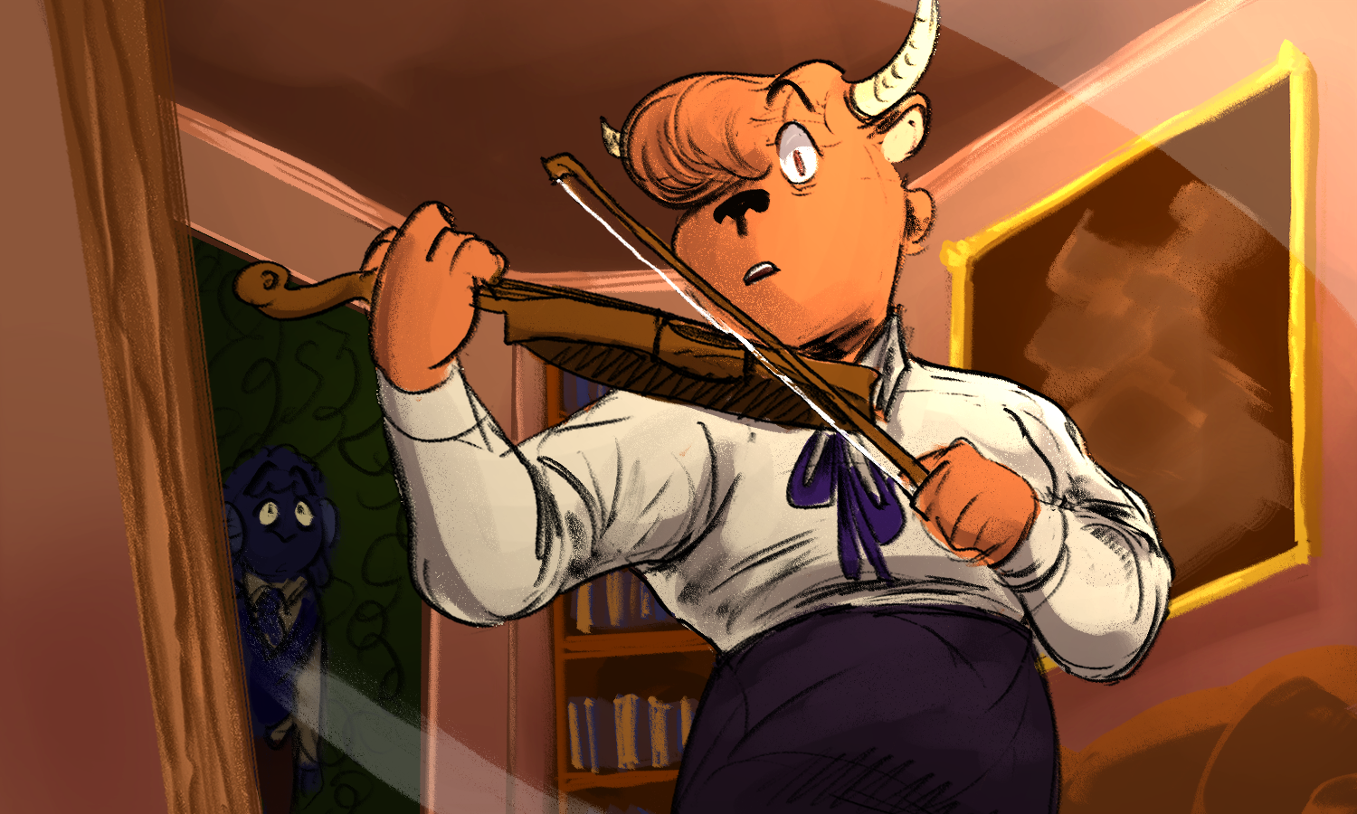 The girl in the mirror shrieked when she saw the shadowed eyes peering from the hall, the music halting with a harsh grind of her bow. When she realized the prince wasn’t the threat she had thought, her fear flashed to a hot anger.